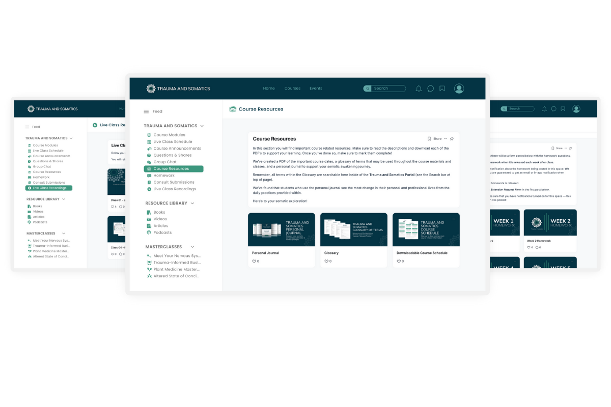 All recordings, resources, and materials in one place. Lifetime access.